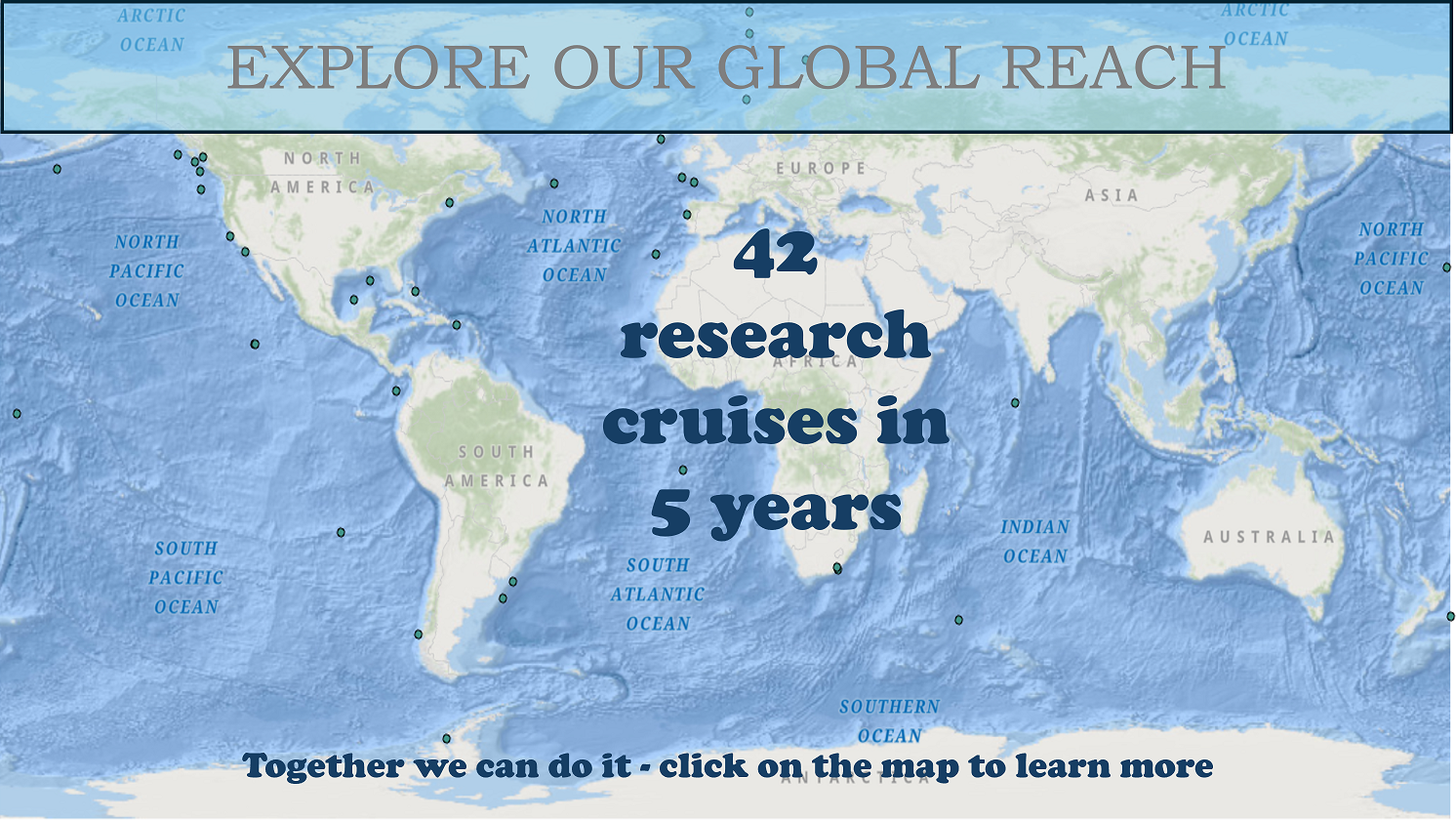 We have designed a global scale programme of field work that is needed to deliver the Ocean Decade objectives. Over the course of the Ocean Decade we will map affiliated research in all ocean basins and track progress in achieving global biological sampling coverage.